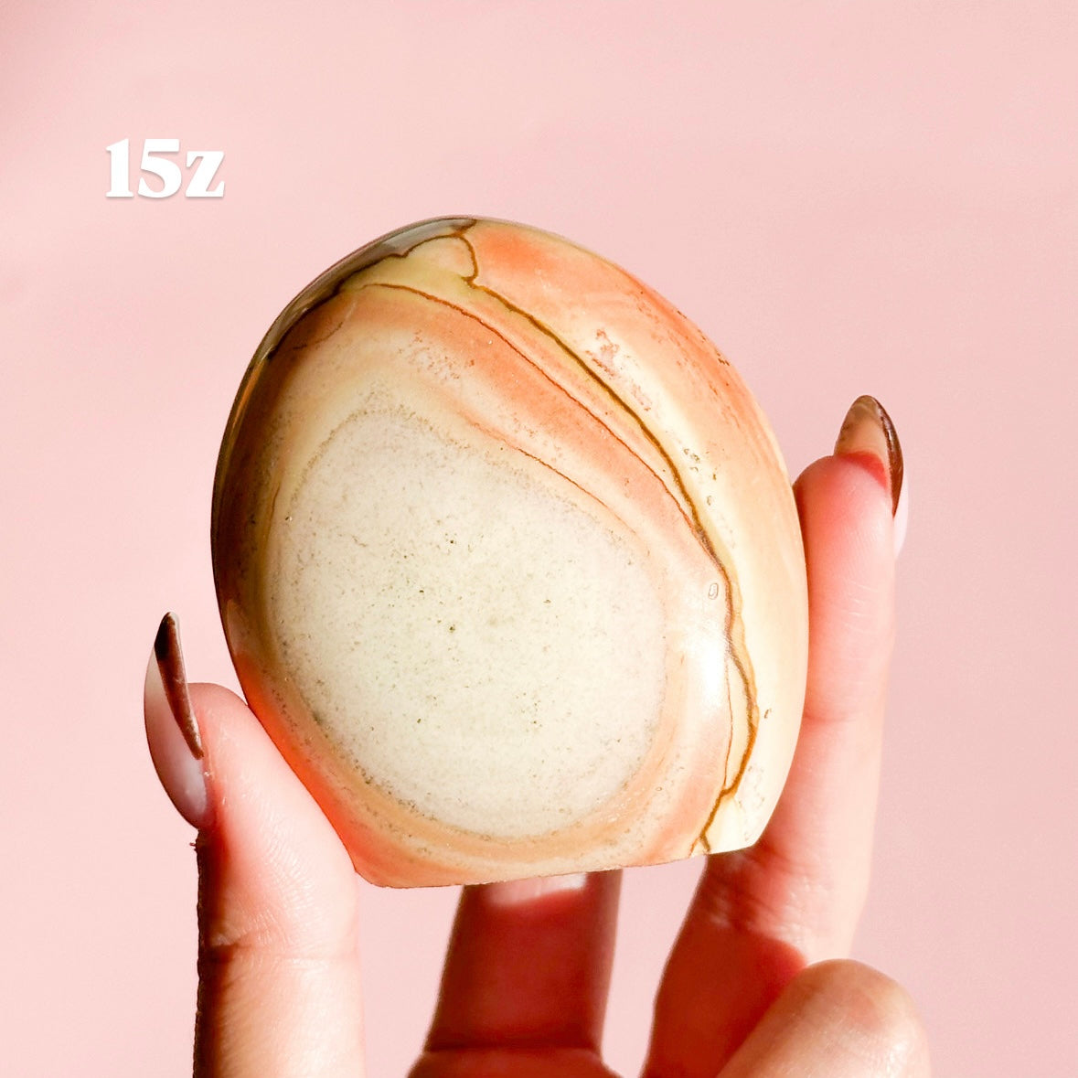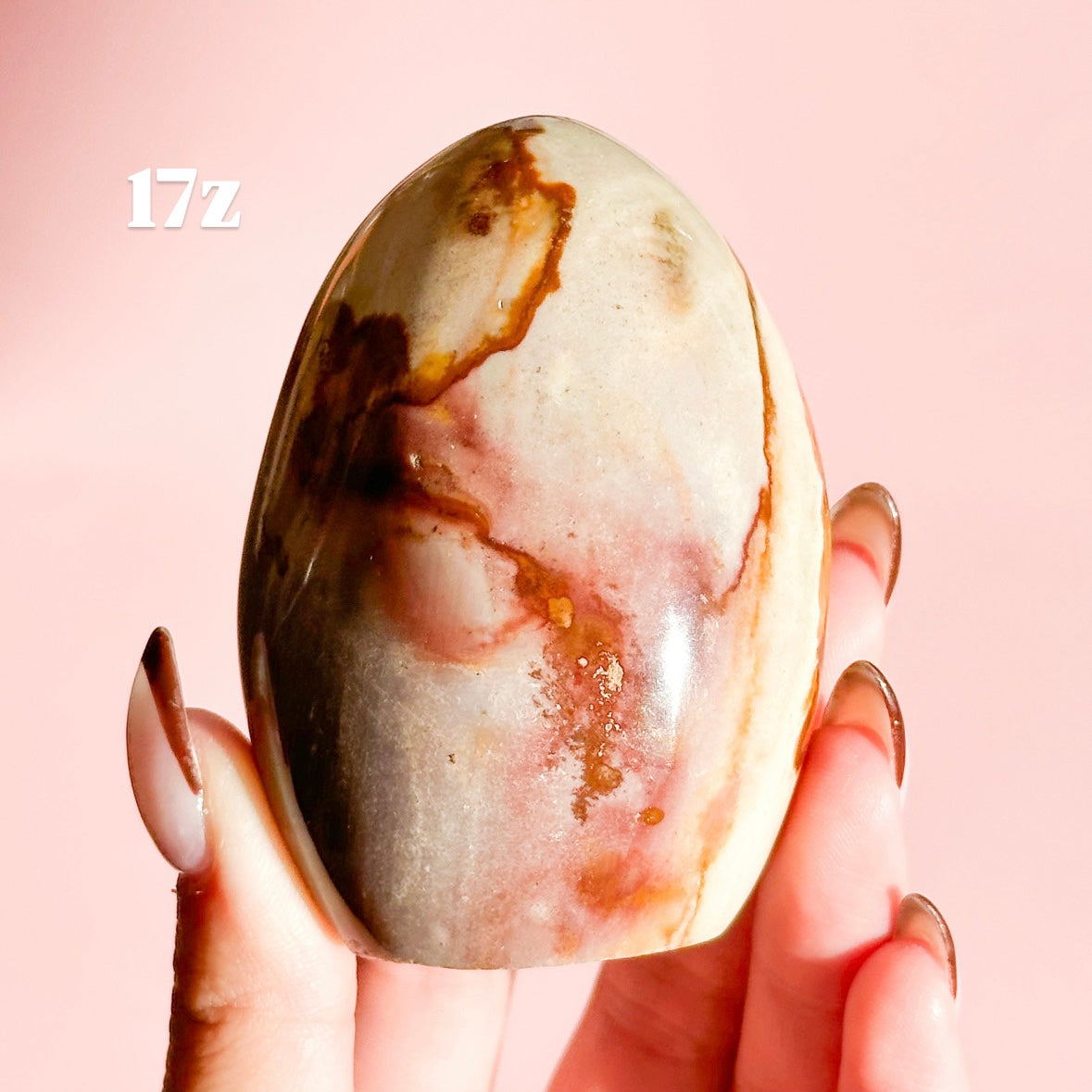 Bring home a powerful symbol of balance, vitality, and natural artistry with our Polychrome Jasper Freeform. Also known as Desert Jasper, this extraordinary stone is hand-polished to reveal its stunning, organic swirls of color, burnt oranges, earthy browns, ocean blues, creams, and soft greens, all flowing together in a mesmerizing dance only nature could create.