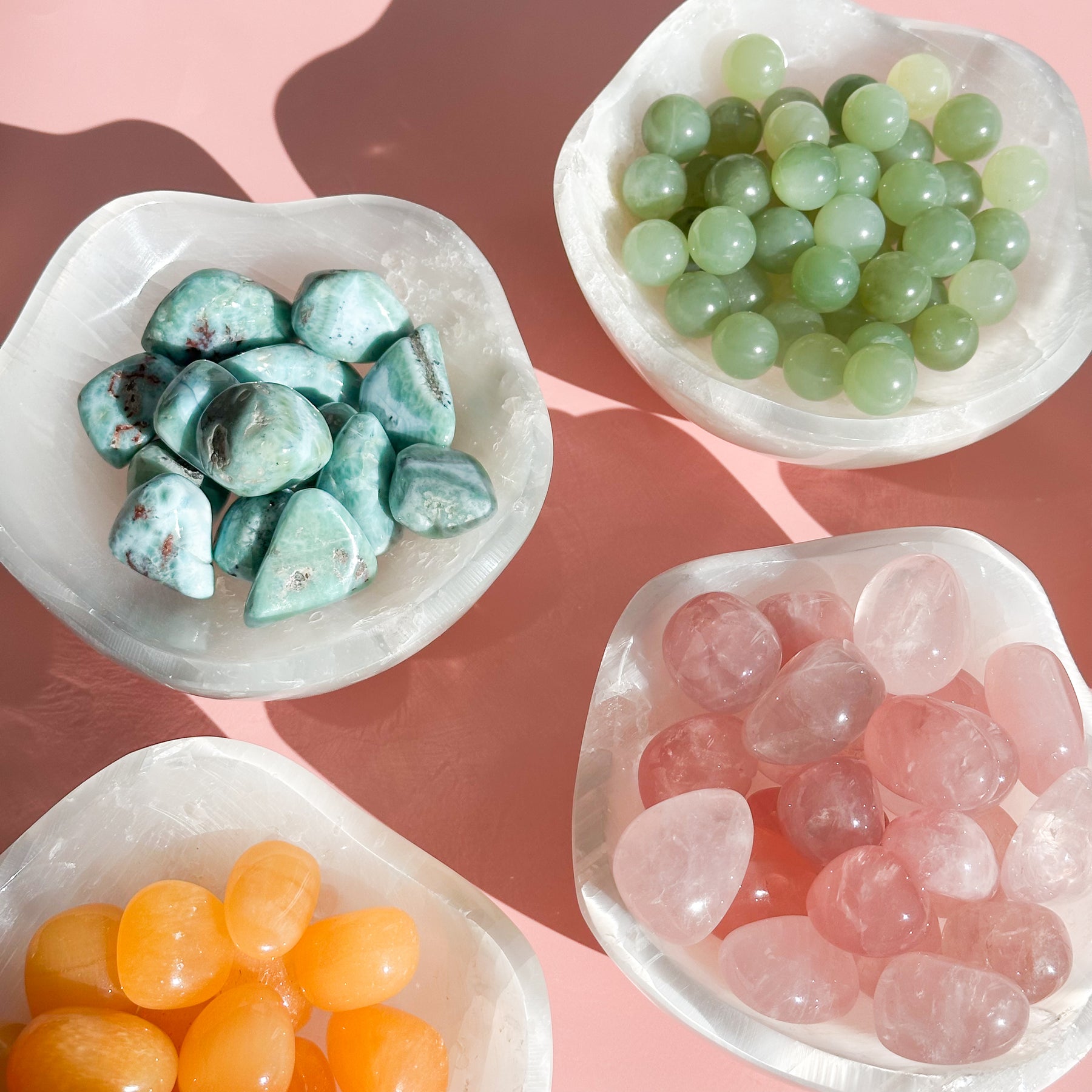 Elegant and luminous, our Satin Spar Ruffled Bowl brings calming energy and natural beauty to any space. Carved into a delicate ruffled shape, each bowl shimmers with satin-like light reflections unique to this crystal. Satin Spar, a form of Selenite, is known for its cleansing and purifying properties, making it perfect for charging your crystals, jewelry, or simply infusing your home with serene energy.