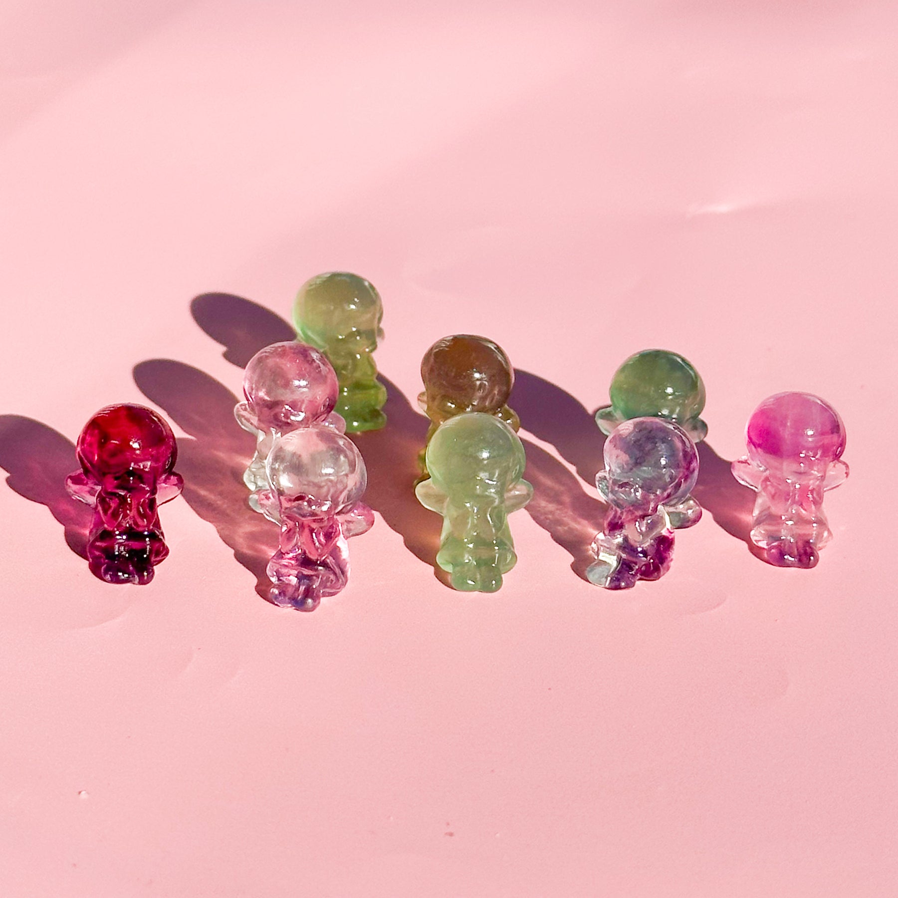 This Fluorite Baby Angel is a beautifully carved piece made from natural rainbow fluorite, featuring soft bands of purple, green, and clear tones. Each Baby Angel is unique, showcasing the stone's natural variation and gentle translucence. Fluorite is often associated with emotional healing, growth, and harmony. Fluorite can enhance intuition, promote peace and protection, and bring calm to a chaotic mind. Place this Fluorite baby angel in your office, study, or living space to improve concentration, protect against stress, and bring harmony to your environment.