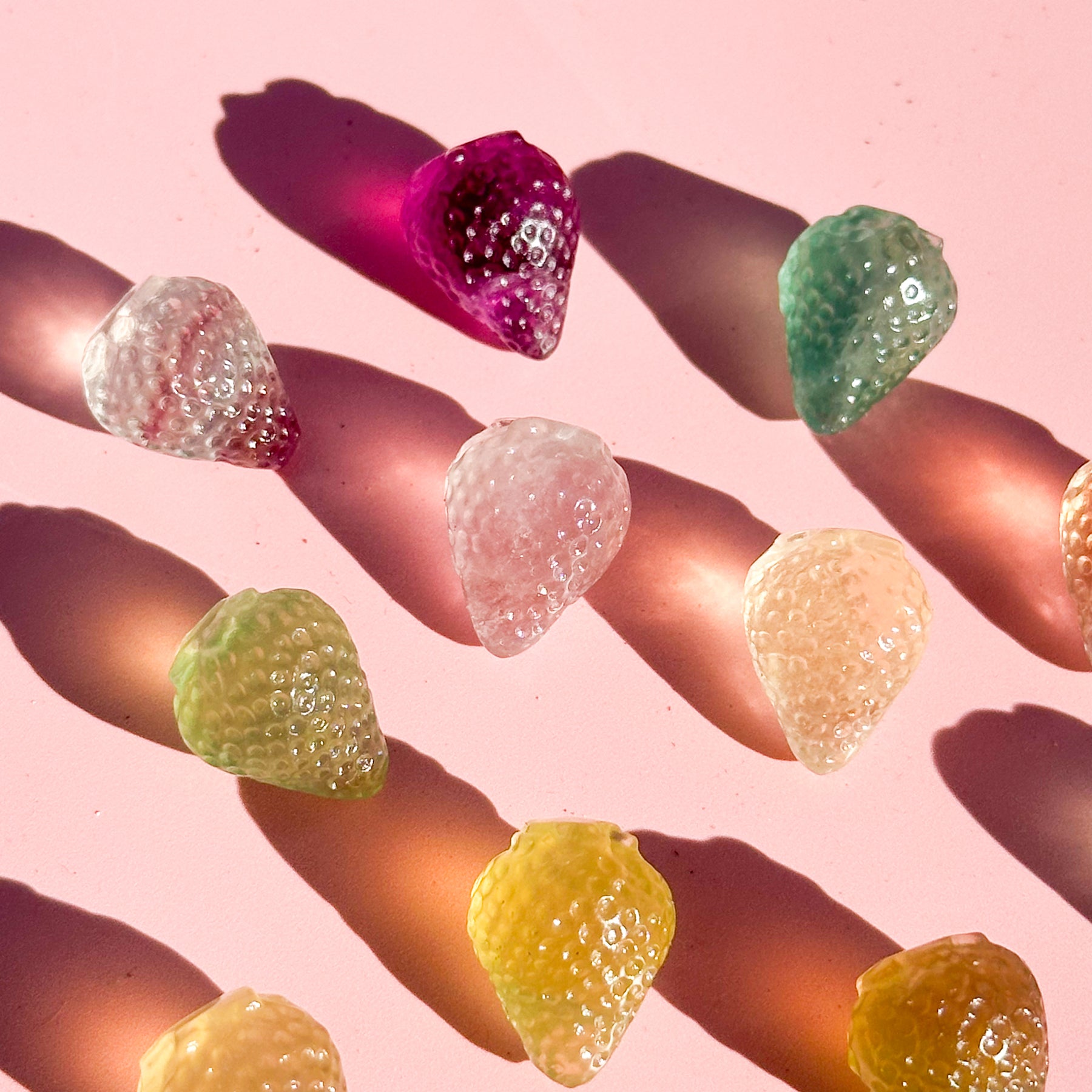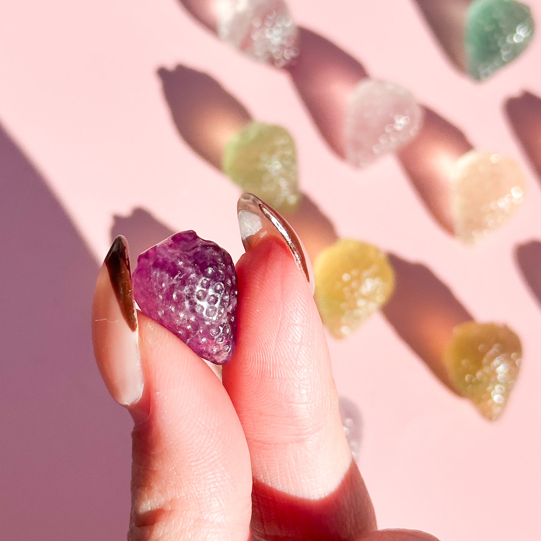 This Fluorite strawberry is a beautifully carved piece made from natural rainbow fluorite, featuring soft bands of purple, green, blue, and clear tones. Each strawberry is unique, showcasing the stone's natural variation and gentle translucence. Fluorite is often associated with emotional healing, growth, and harmony. Fluorite can enhance intuition, promote peace and protection, and bring calm to a chaotic mind. Place this Fluorite strawberry in your office, study, or living space to improve concentration, protect against stress, and bring harmony to your environment.