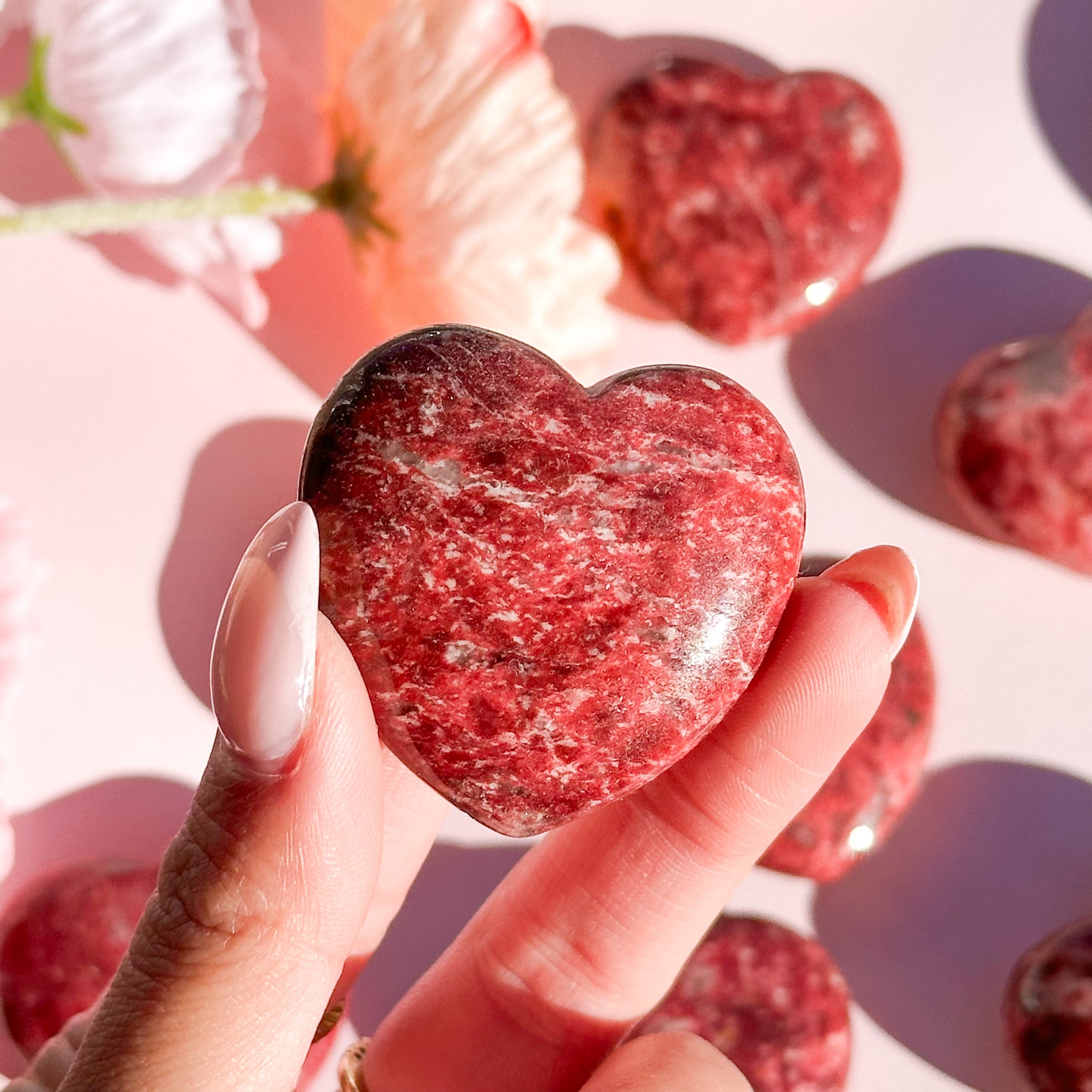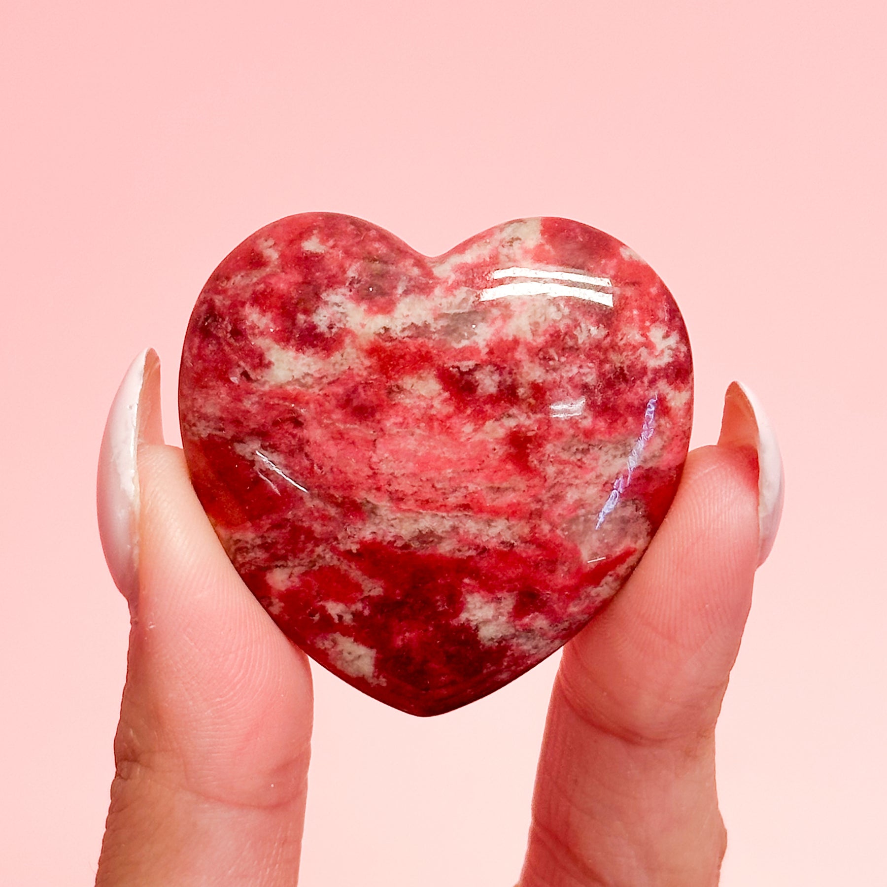A heart-shaped Thulite is a nurturing stone that promotes emotional healing, compassion, and self-love, helping to open and balance the heart chakra. It is believed to enhance relationships by encouraging honesty, understanding, and emotional expression, while also boosting one's sense of inner peace. With its soft, soothing energy, Thulite supports healing from emotional wounds, encouraging personal growth and fostering a sense of joy and optimism.