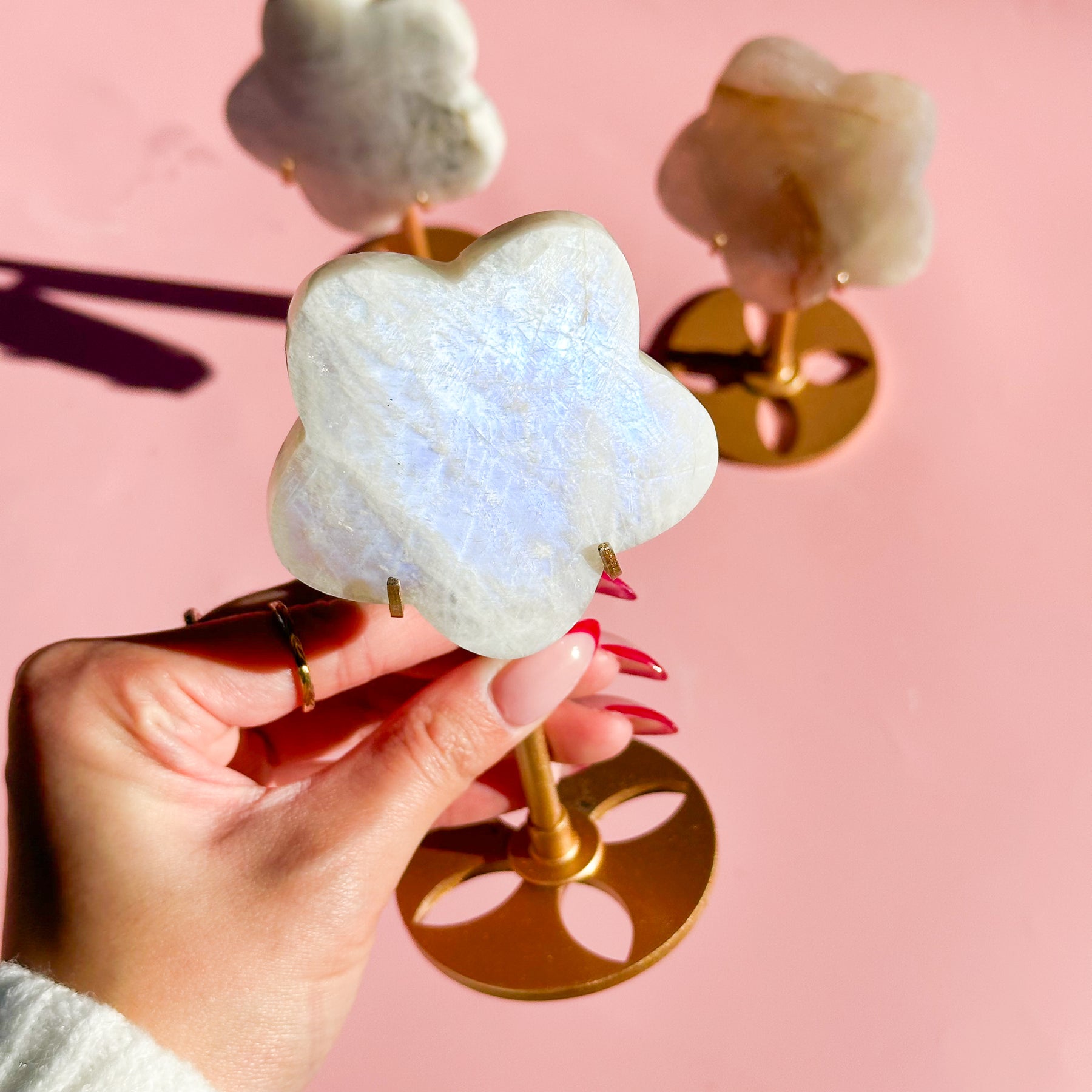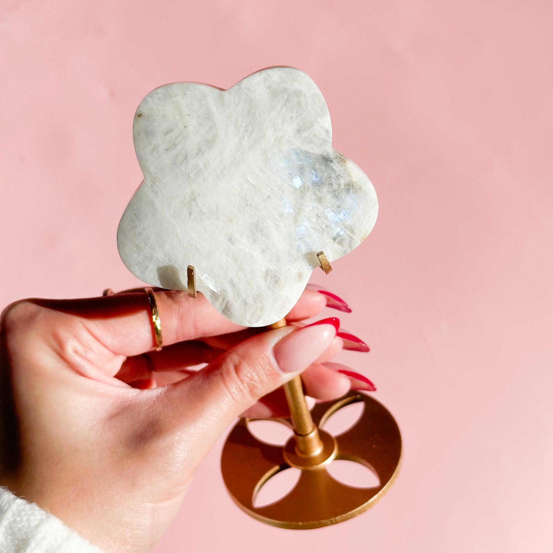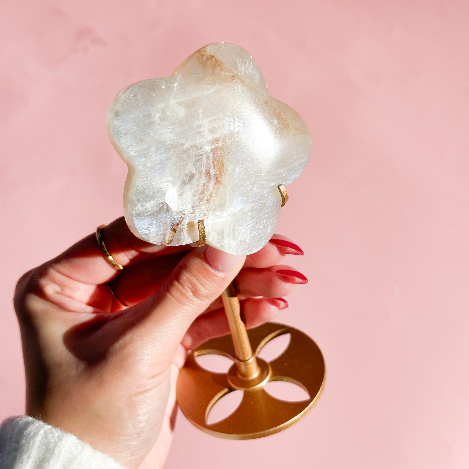 This Moonstone Puffy Star comes with a stand, perfect for displaying this beautiful carving on a shelf or in a room to help guide users toward compassion and healing.