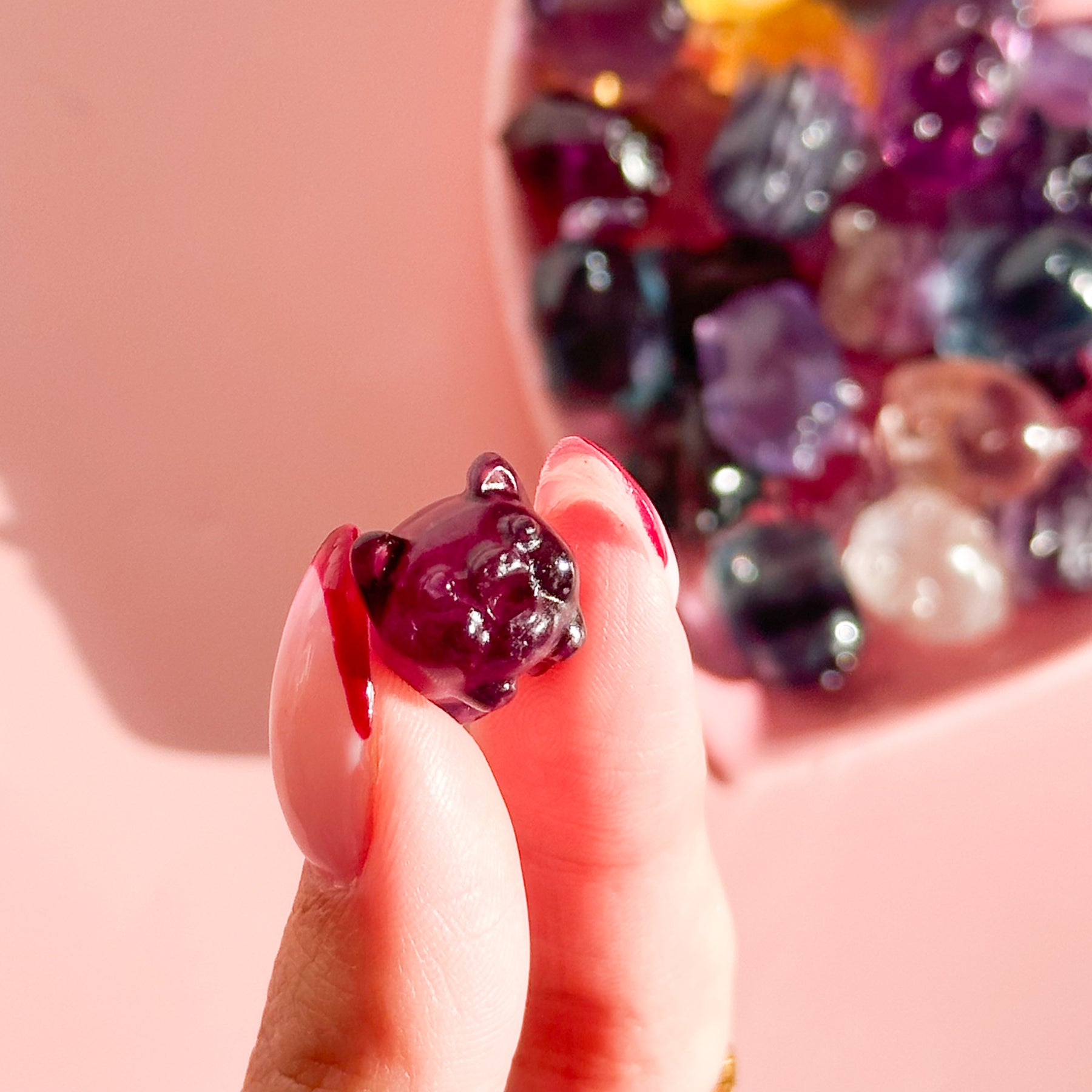 This Fluorite Mini Pig is a compact and carefully hand-carved piece made from natural rainbow fluorite. Known for its translucent bands of purple, green, and clear tones, each piece displays unique natural color variations that highlight the beauty of the stone. This small, yet mighty figurine is the perfect addition to any crystal collection.