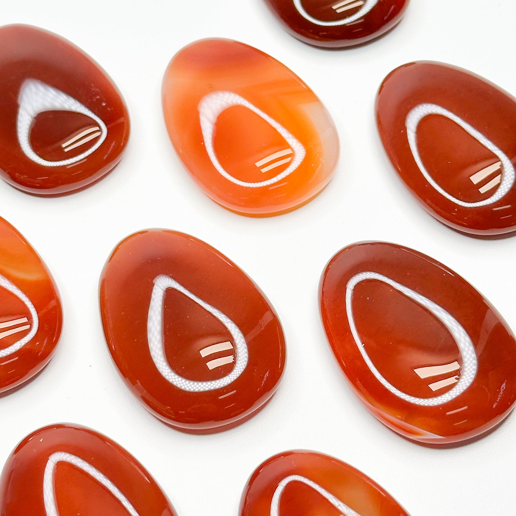 Carnelian worry stones are believed to promote emotional healing by calming anxiety and stress, helping to ground and stabilize the mind. The stone is also thought to boost confidence, creativity, and motivation, enhancing personal strength and vitality. By gently rubbing the smooth surface, users can experience a sense of comfort and clarity, aiding in overcoming negative emotions and promoting positive energy.