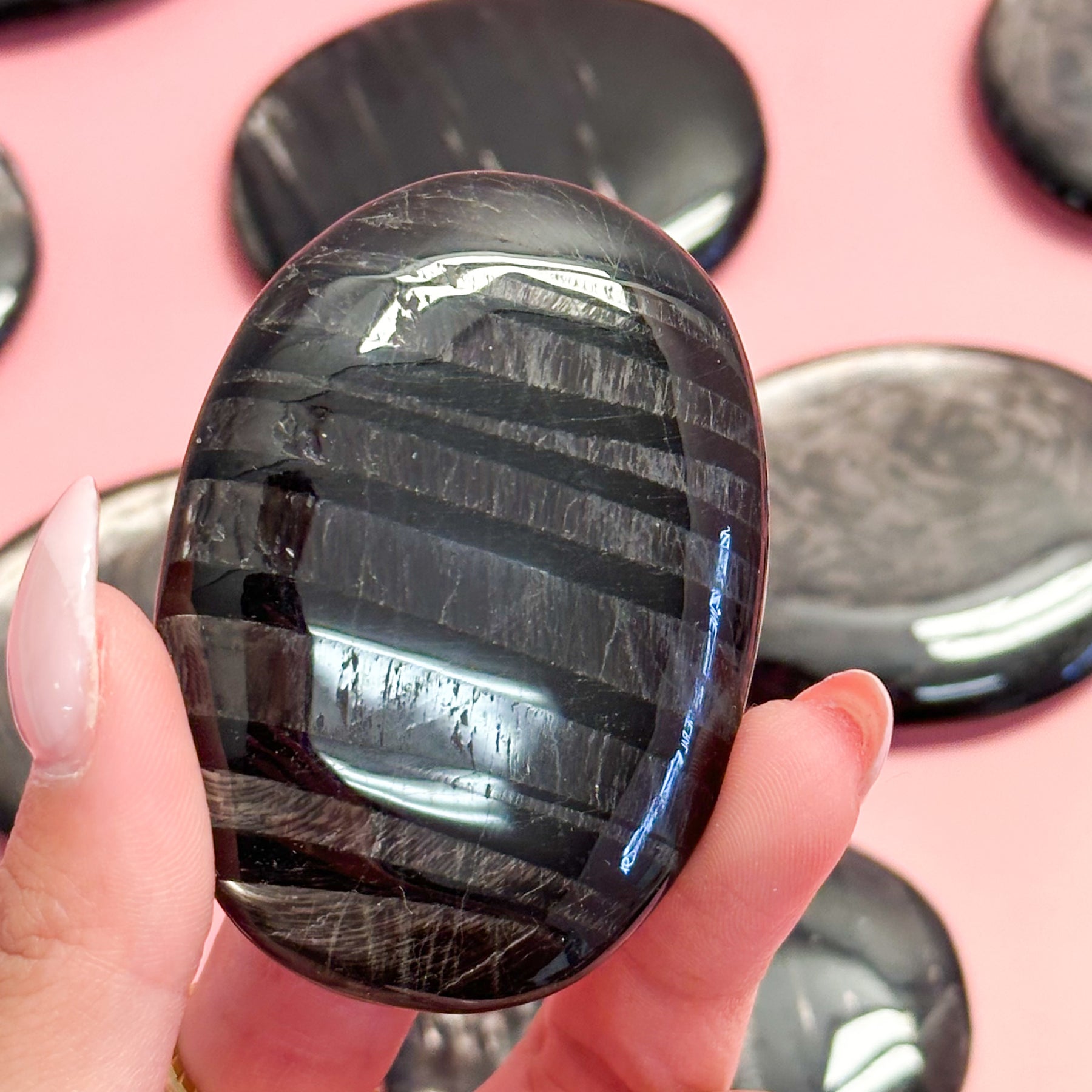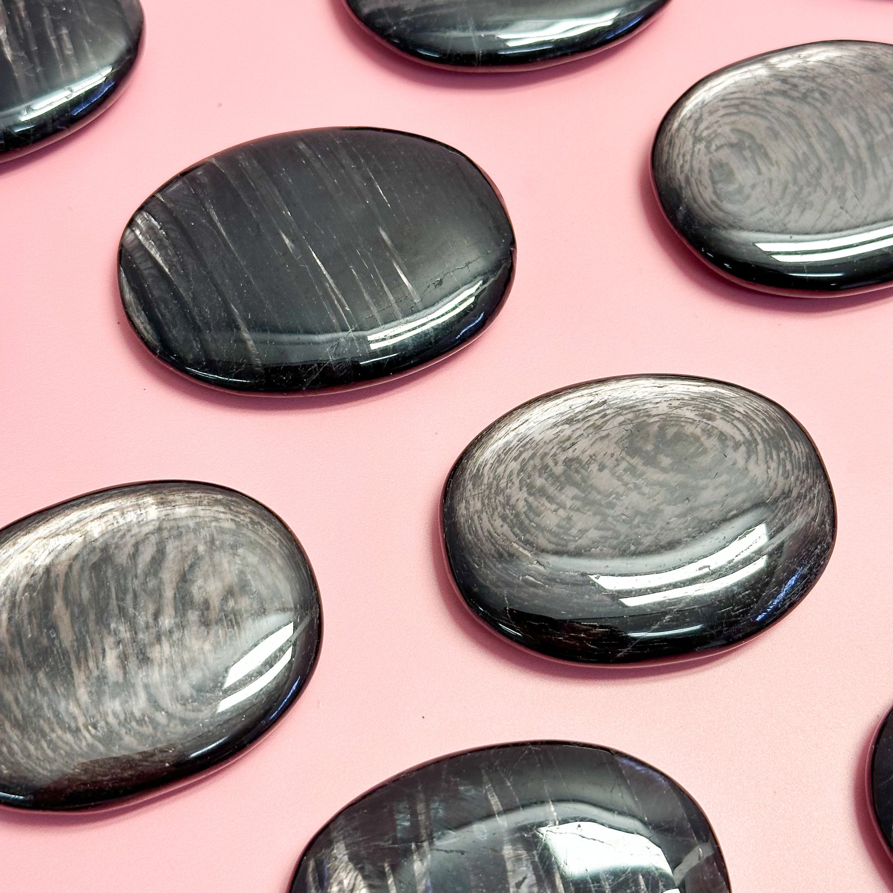 Hypersthene is most commonly known as the stone of magic for its stunning black coloring with distinctive iridescence flash that can appear bronze, silver, green, or violet; these striking colors emphasize its strong grounding and protective qualities. This stone is excellent for reducing mental fog, calming an overactive mind, and enhancing focus, making it a valuable aid for meditation and problem-solving.