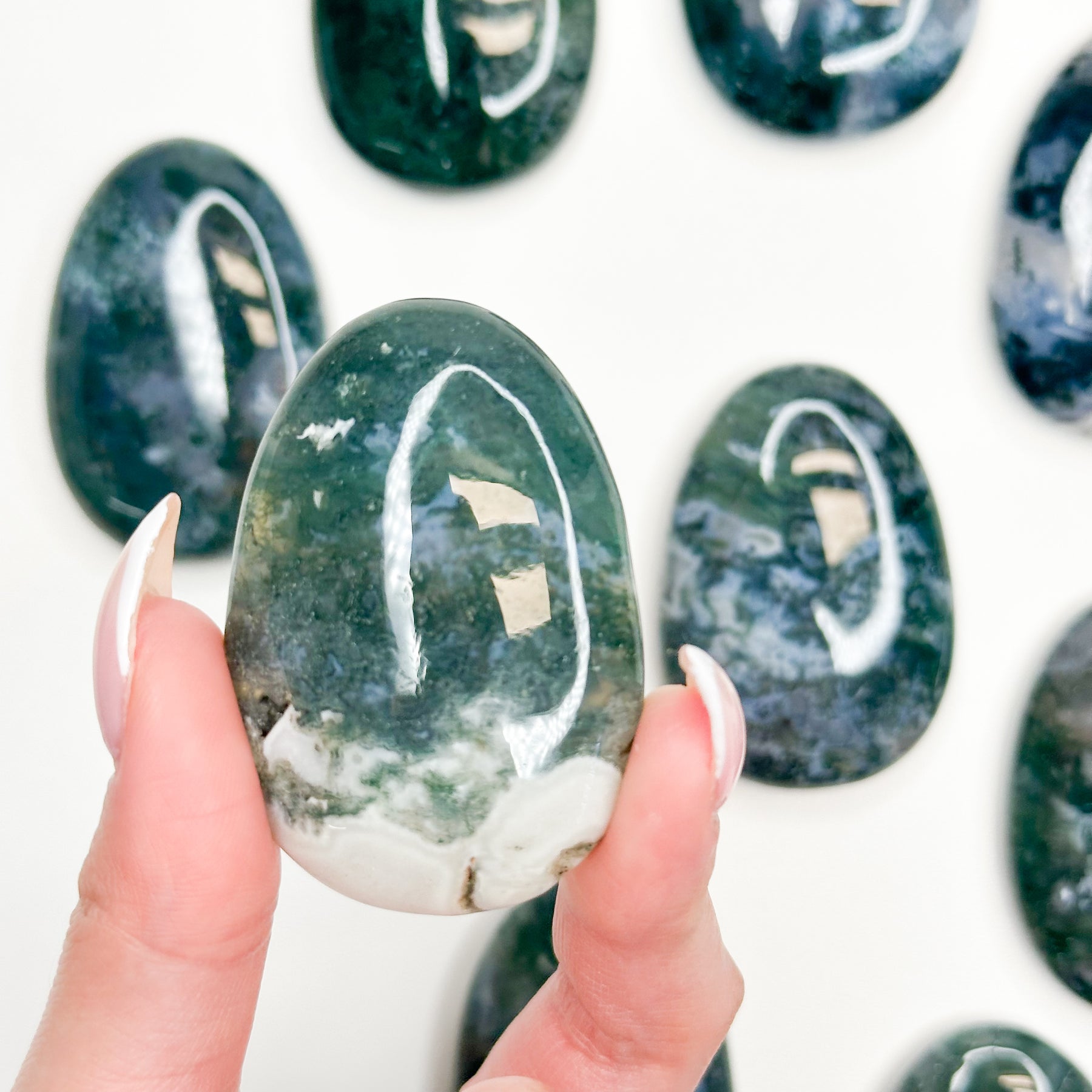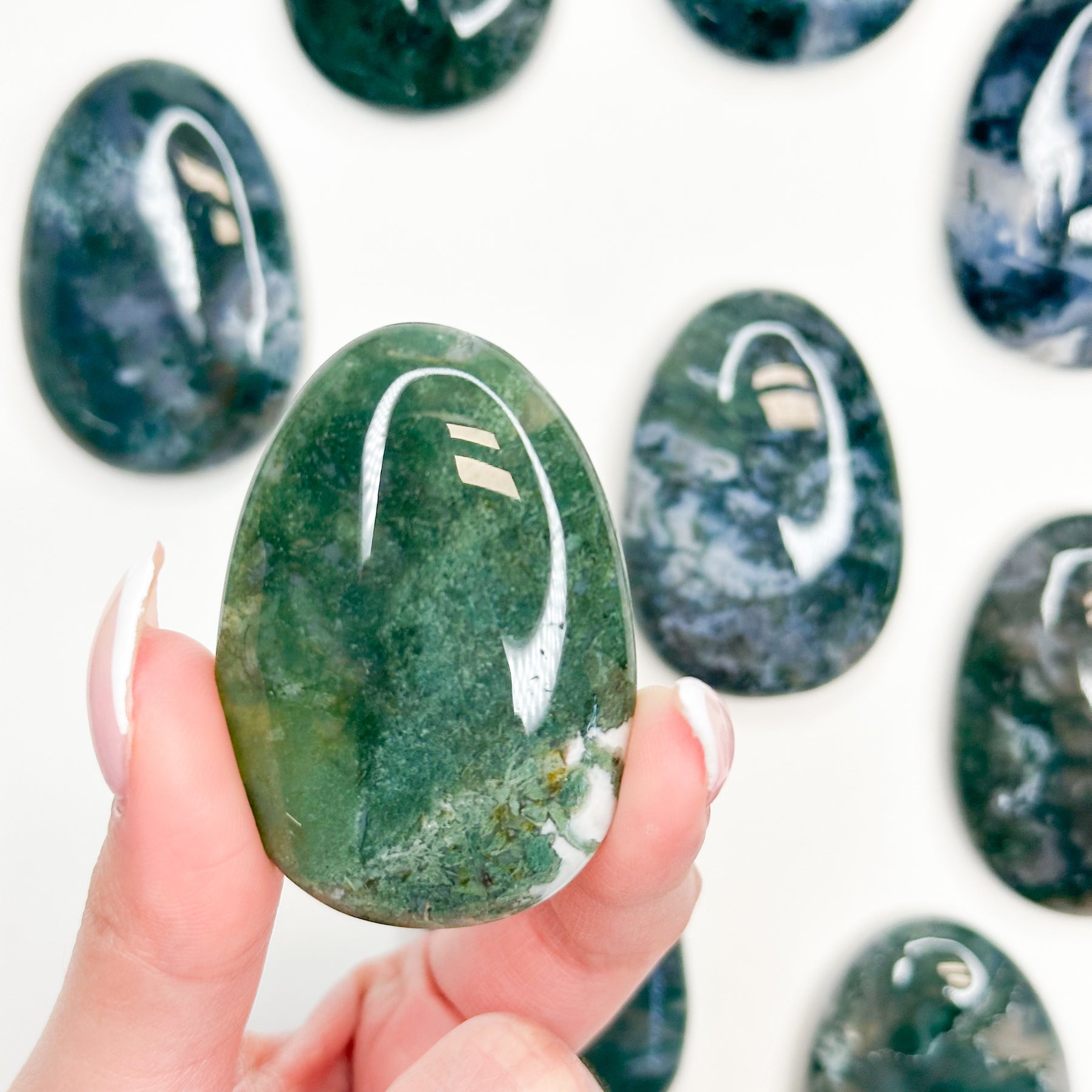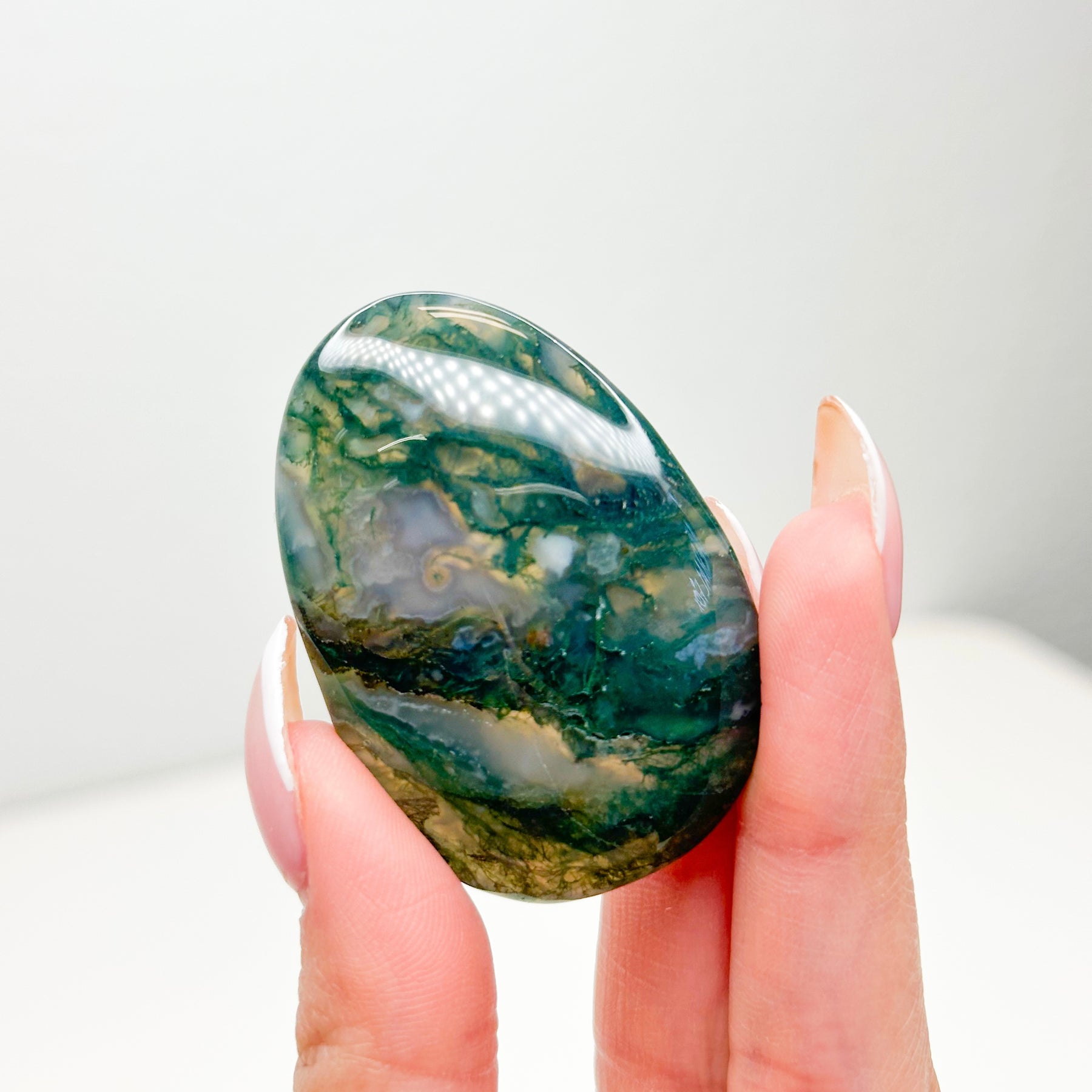 Moss Agate is traditionally associated with wealth and success, particularly when it comes to attracting new business, starting new ventures, and fostering sustained growth (like a growing plant). It is excellent for promoting patience, perseverance, and emotional stability. It helps those who experience extreme mood swings by encouraging a feeling of peace and wholeness. It is often used to help facilitate the release of old attachments and initiate new life chapters with a grounded, optimistic energy