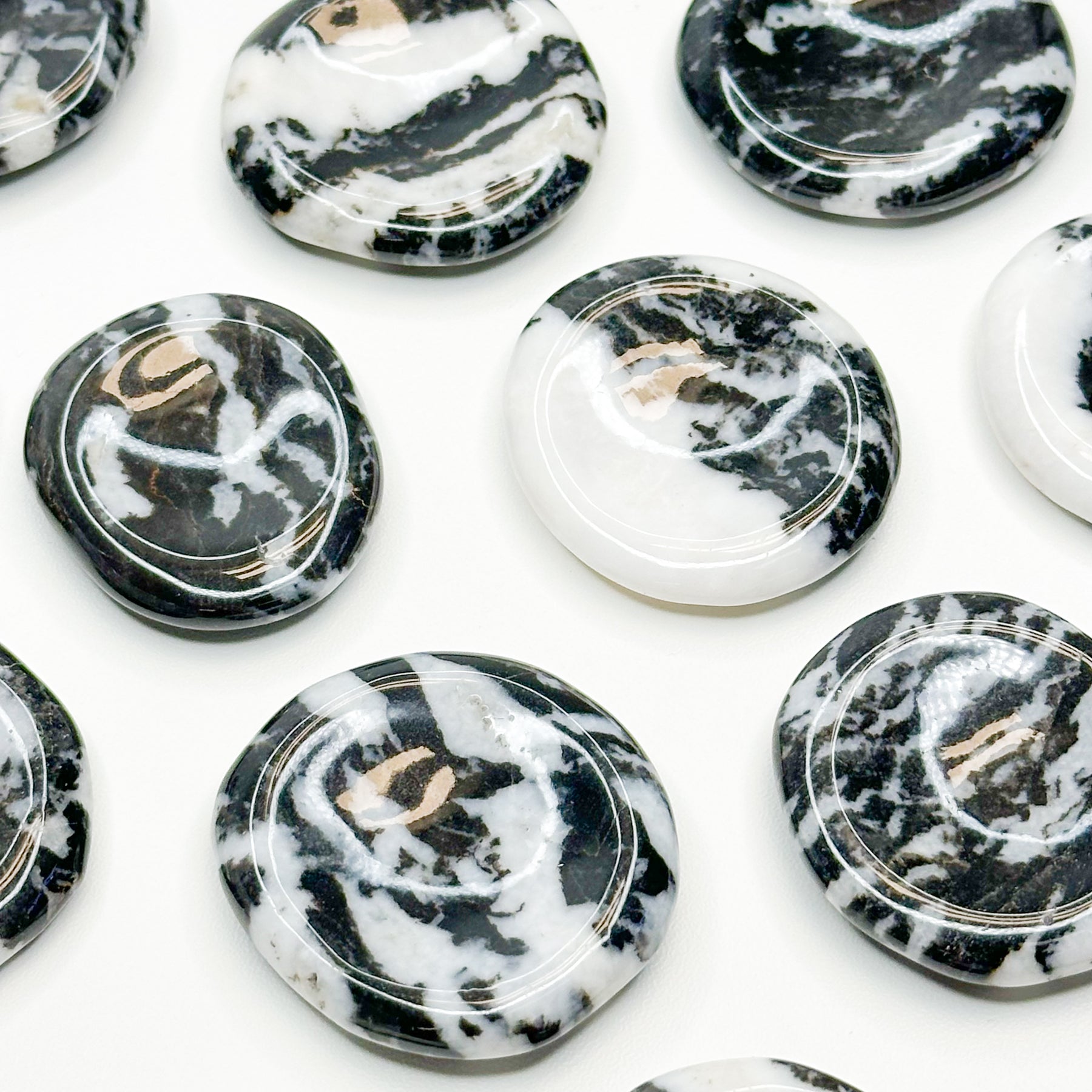 Zebra Jasper is a powerful balancing stone. Its black and white pattern visually and energetically represents the Yin (feminine, passive, dark) and Yang (masculine, active, light) forces, helping to integrate and harmonize these dualities within yourself. Alongside this, it is also an incredibly powerful grounding stone that firmly anchors you to the present moment and the Earth's energy. This stability offers a protective shield against negativity and allows you to move forward without feeling overwhelmed by fear or anxiety.