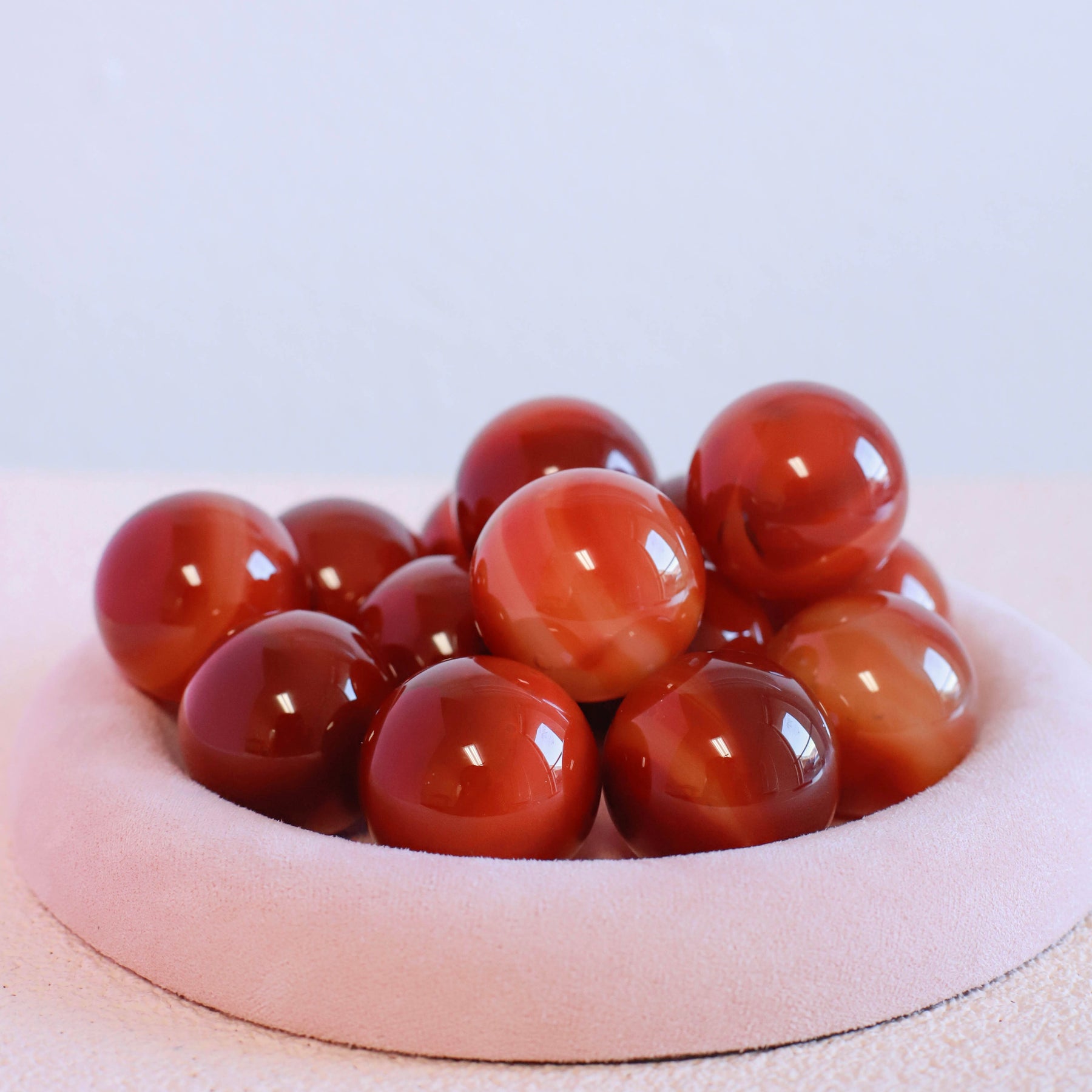 Unleash bold energy and creative fire with this stunning Carnelian Agate Sphere. Hand-carved into a flowing sphere shape, this crystal radiates with vibrant shades of deep orange, fiery red, and golden amber, often accented by natural agate banding or translucent swirls.