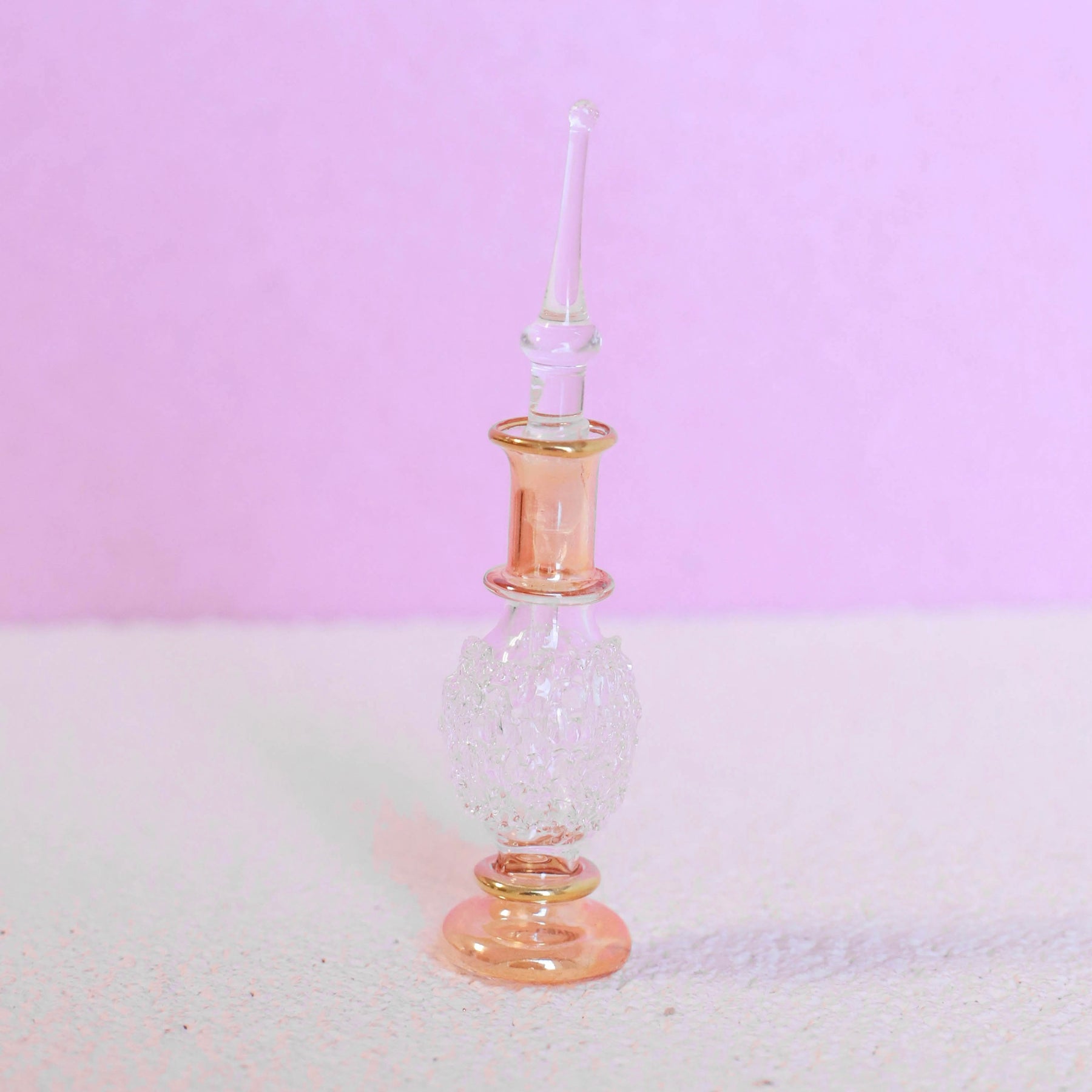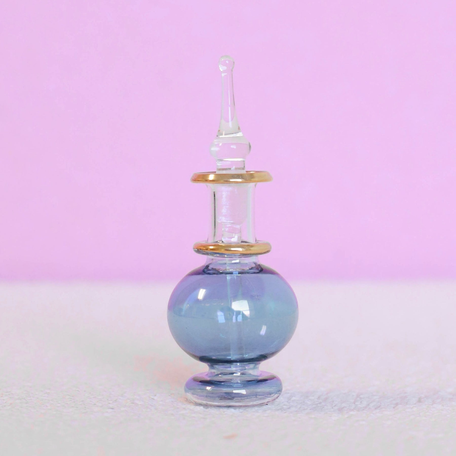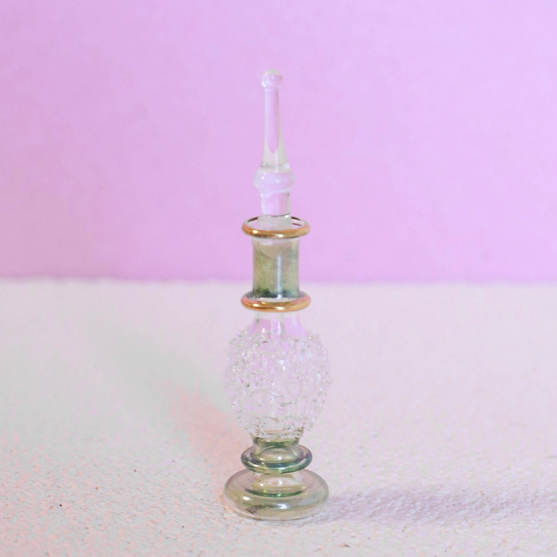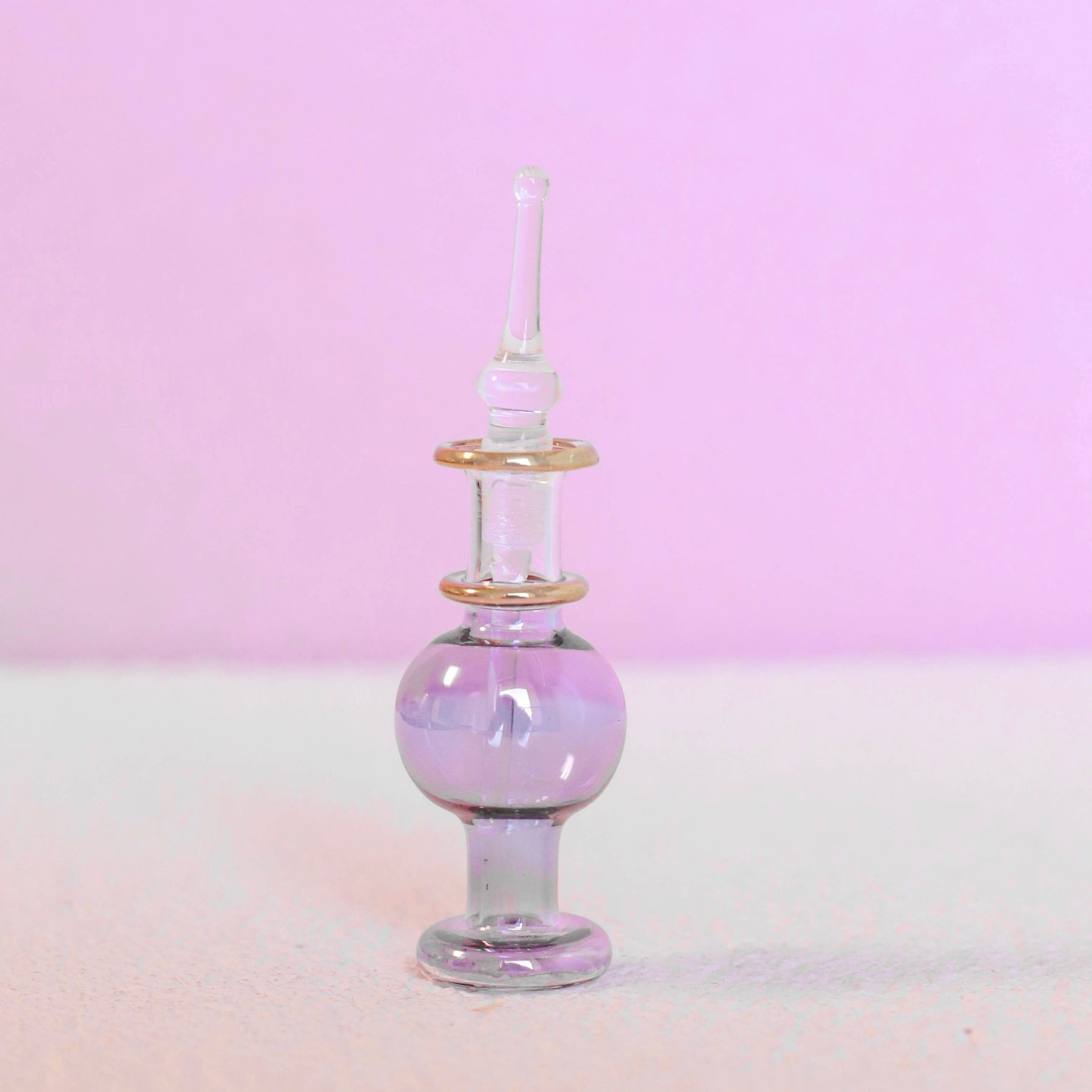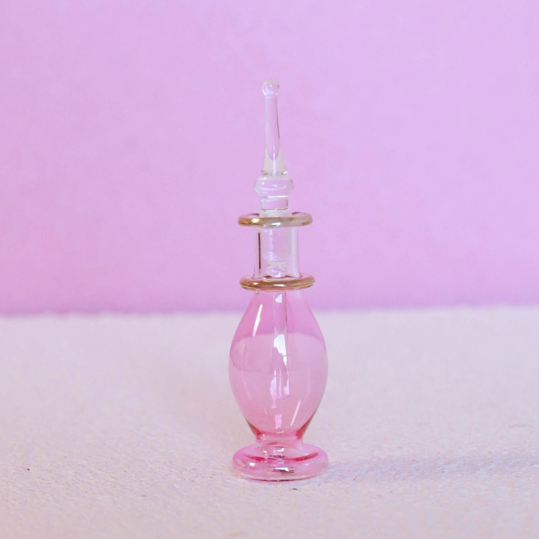 The miniature glass perfume bottles are the perfect addition to a vanity, tray, or gem collection. Crafted with delicate curves and shimmering gold-toned accents, each bottle features a unique silhouette and a soft, ethereal color palette. While they do not contain liquid, their translucent finish beautifully catches the light, making them a stunning choice for decorative displays.