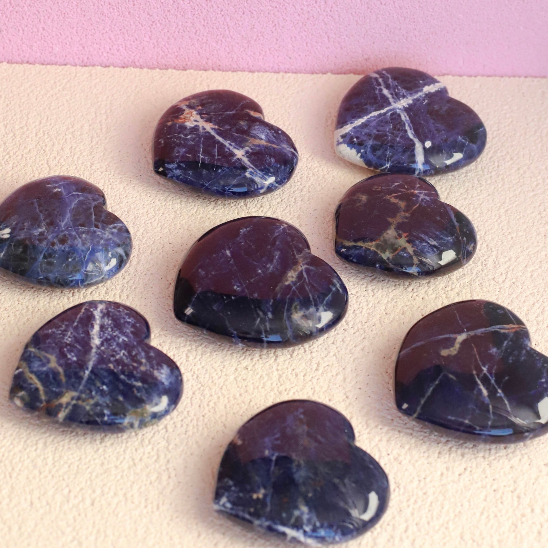 With deep royal blue, indigo, violet, and white colors, this Sodalite Flat Stone is a jaw-dropping stone, excellent for clearing mental fog, enhancing concentration, and promoting rational thought over emotional impulsivity, making it a great study aid. It provides a calming and stabilizing effect on the mind, helping to reduce panic attacks and general anxiety.