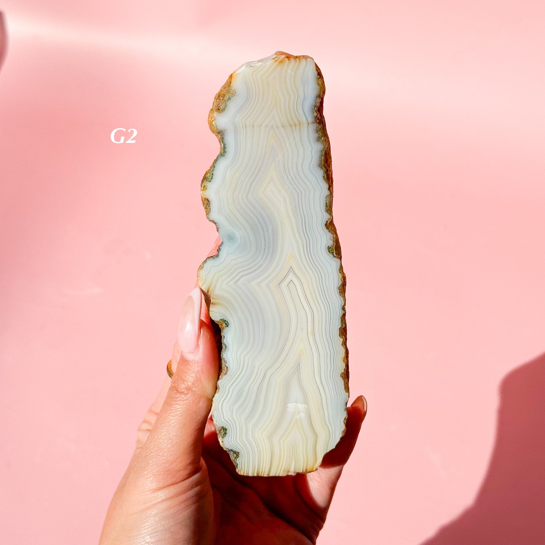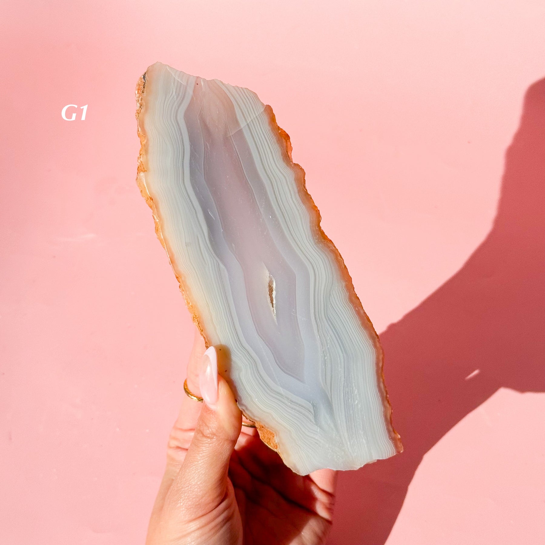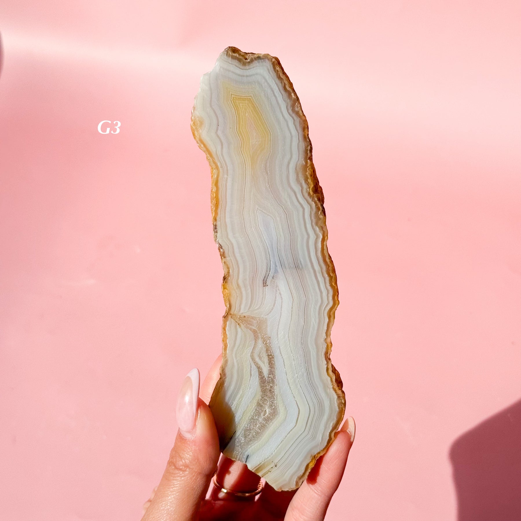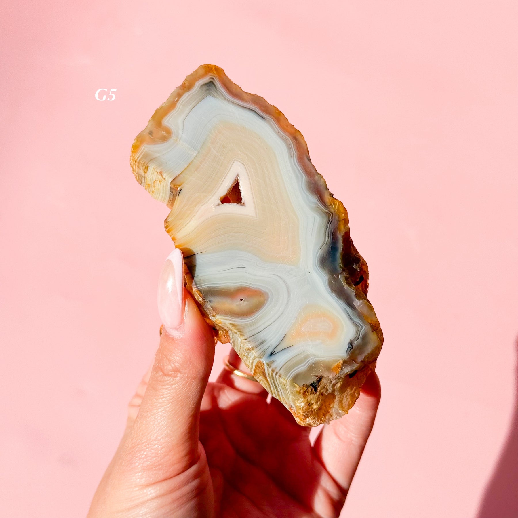 This Agate is a stunning fusion of grounding strength and hidden sparkle. The calming earth-toned color palette instills a sense of safety and trust. It features the classic banded beauty of agate on the outside, with a surprise natural geode cavity inside, glittering with tiny druzy crystals that shimmer in the light. This unique formation symbolizes the magic that lies within, making it a perfect stone for inner healing, protection, and quiet transformation.
