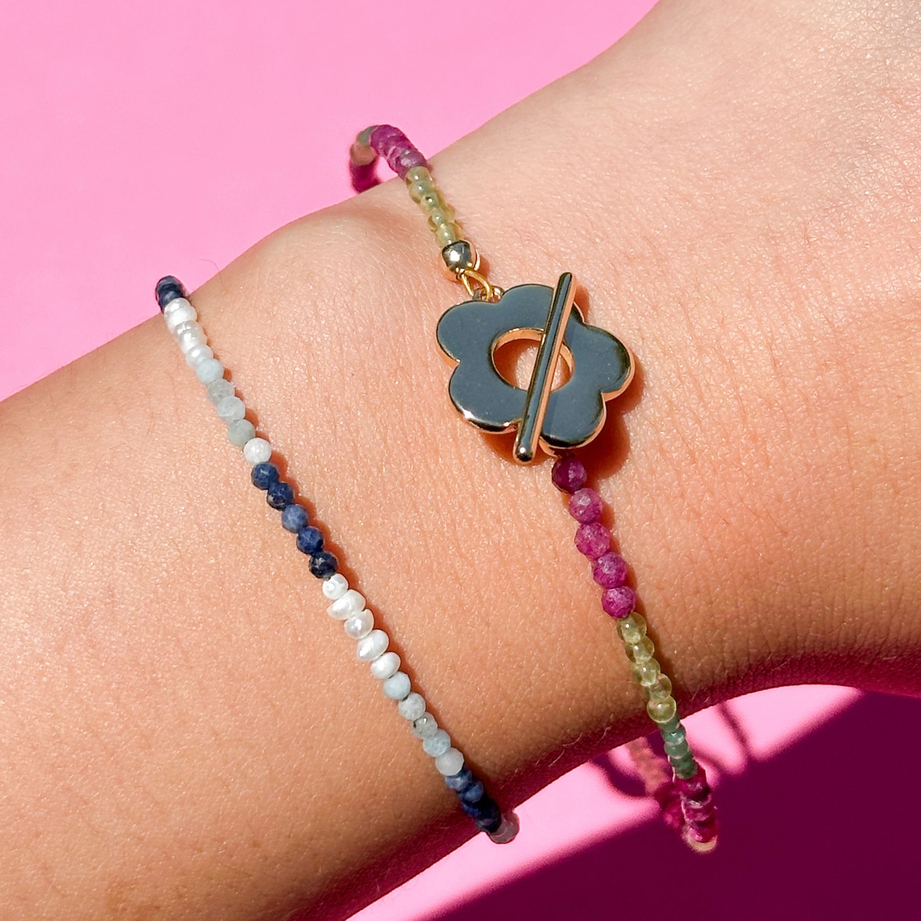 - Genuine gemstone beads of your choice, repeated in patterns of 5 beads.