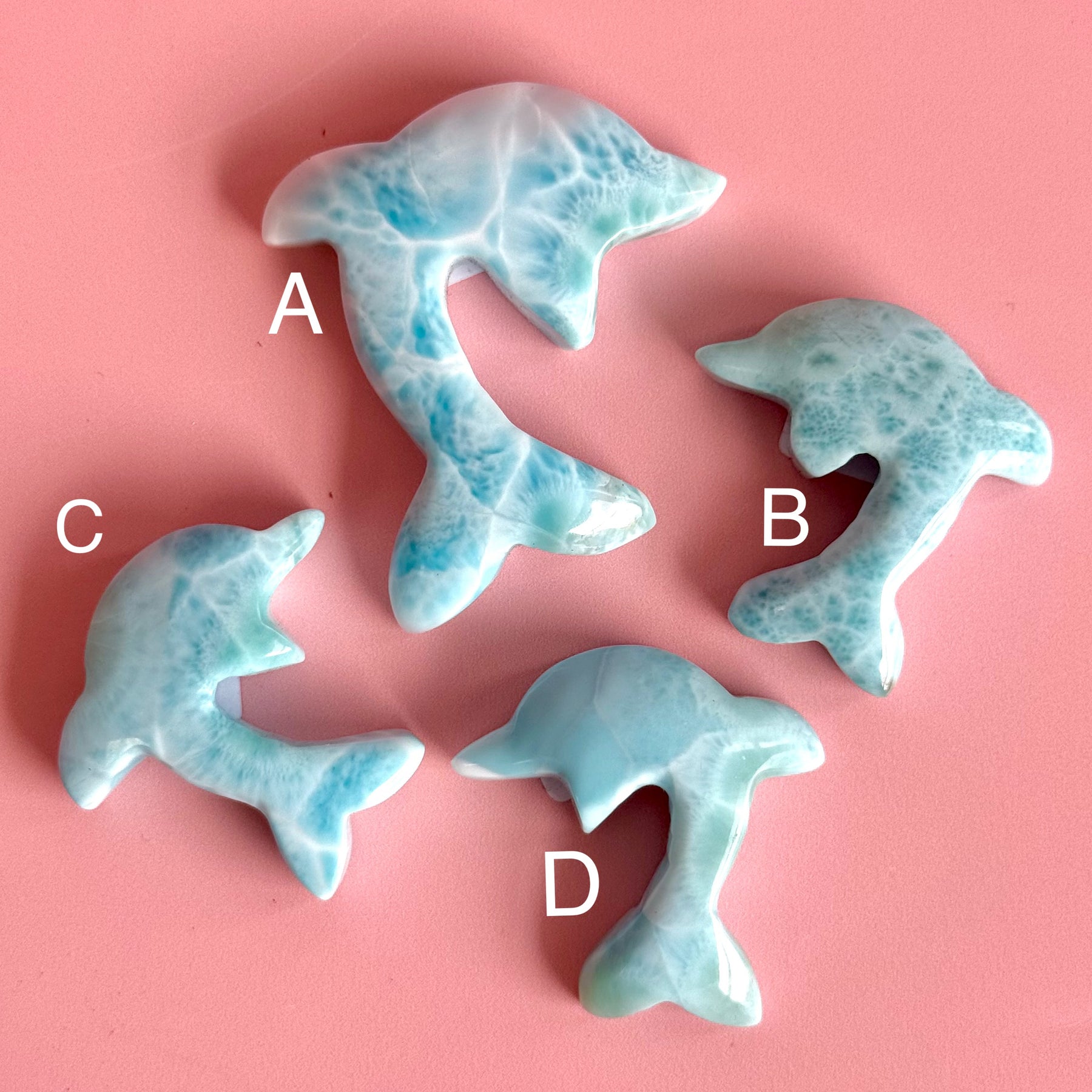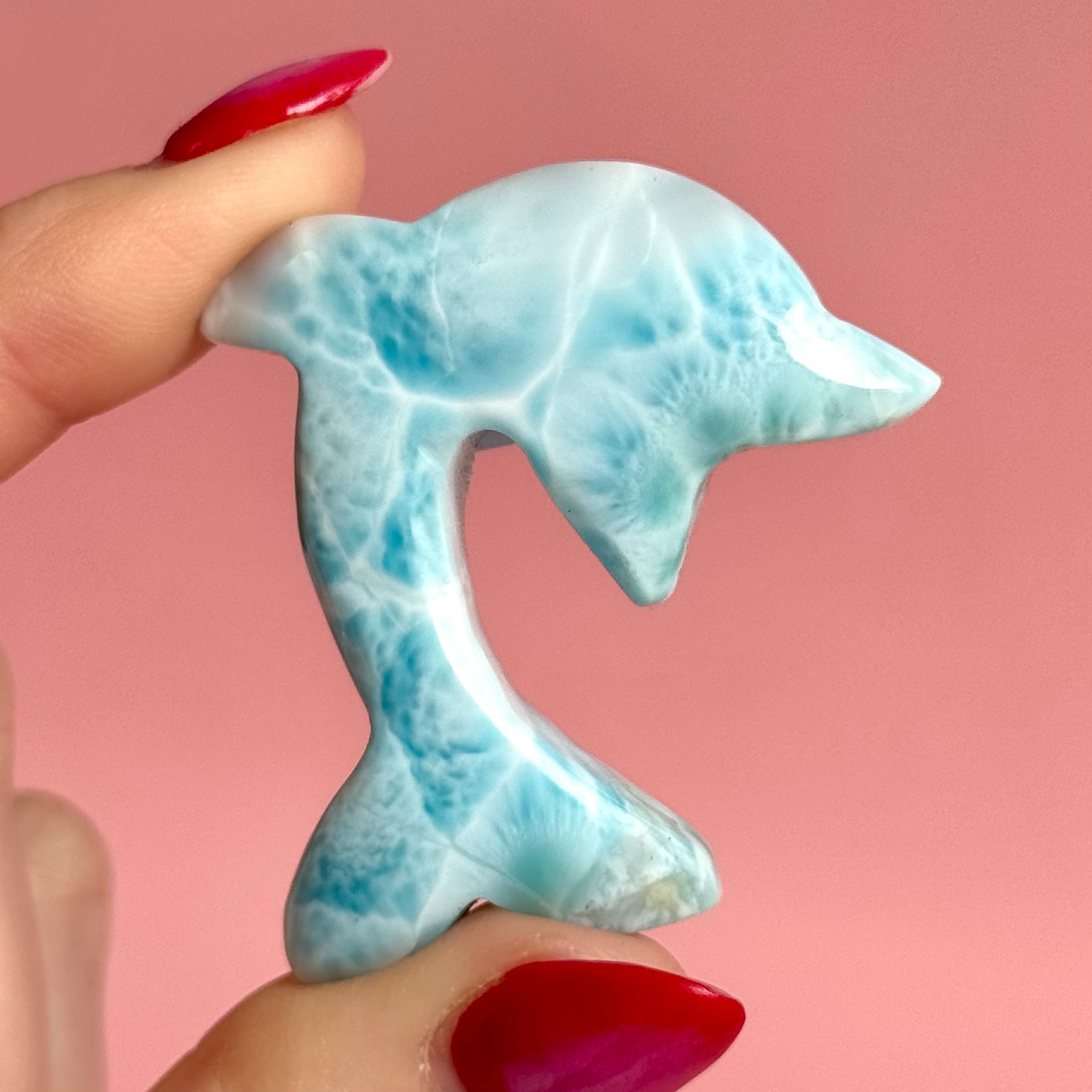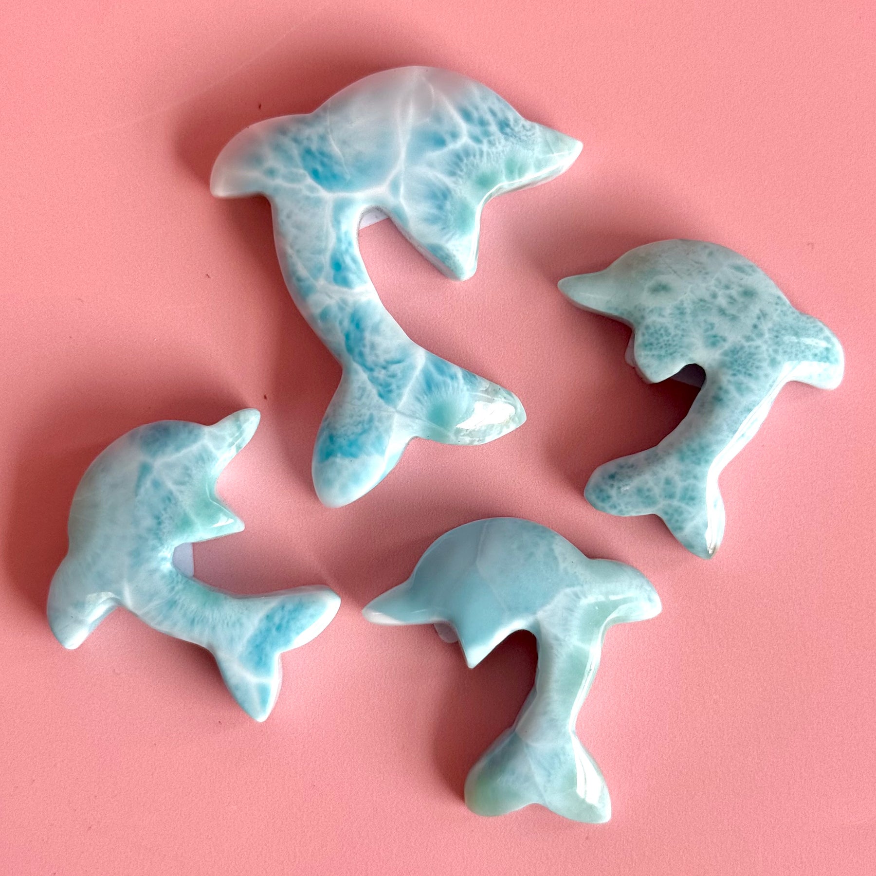 This stunning larimar dolphin showcases the stone’s signature oceanic blues, accented with soft white marbling reminiscent of Caribbean waves. Hand-polished to highlight its natural beauty, each piece is truly one-of-a-kind, carrying the calming energy and soothing presence Larimar is known for. Perfect for display, meditation, or as a centerpiece in your collection, this high-quality freeform connects you to tranquility, balance, and the nurturing energy of the sea.