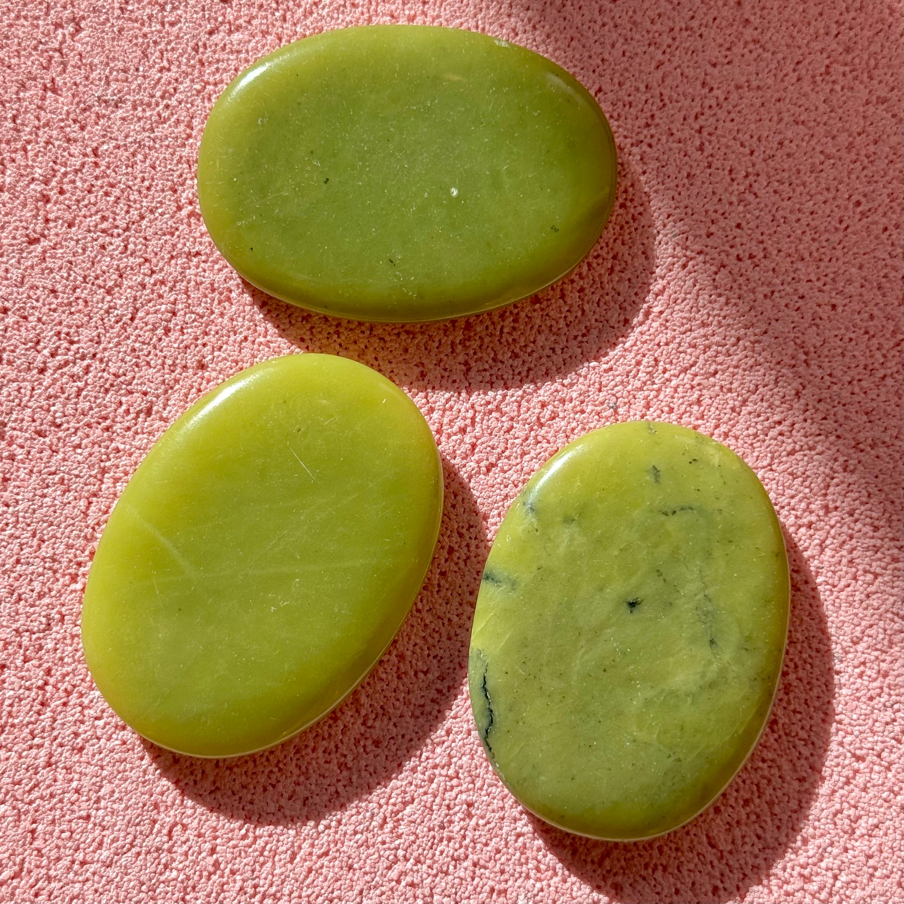 This Serpentine Palmstone is a beautiful stone that has bright, chartreuse green, giving it a striking appearance. Serpentine is celebrated for its powerful healing properties, particularly its ability to foster emotional and spiritual transformation. This stone is believed to aid in the release of old patterns and blockages, facilitating personal growth and emotional healing. It is also thought to enhance intuition and inner wisdom, making it a valuable tool for self-discovery and spiritual development.